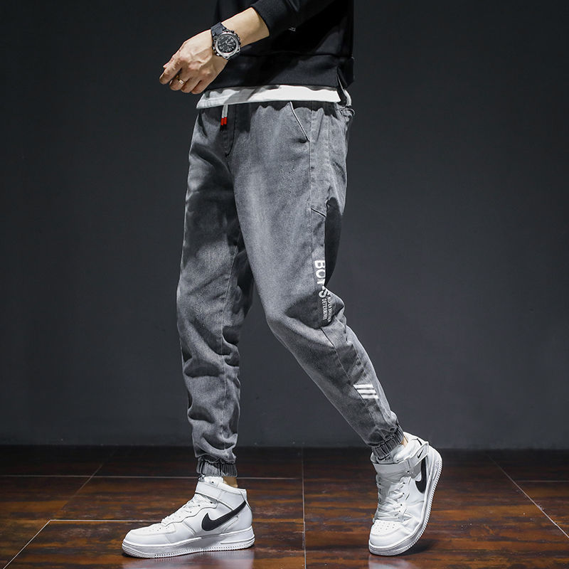 哈伦裤男士2021新款春秋季韩版潮流休闲束脚裤宽松百搭牛仔长裤男