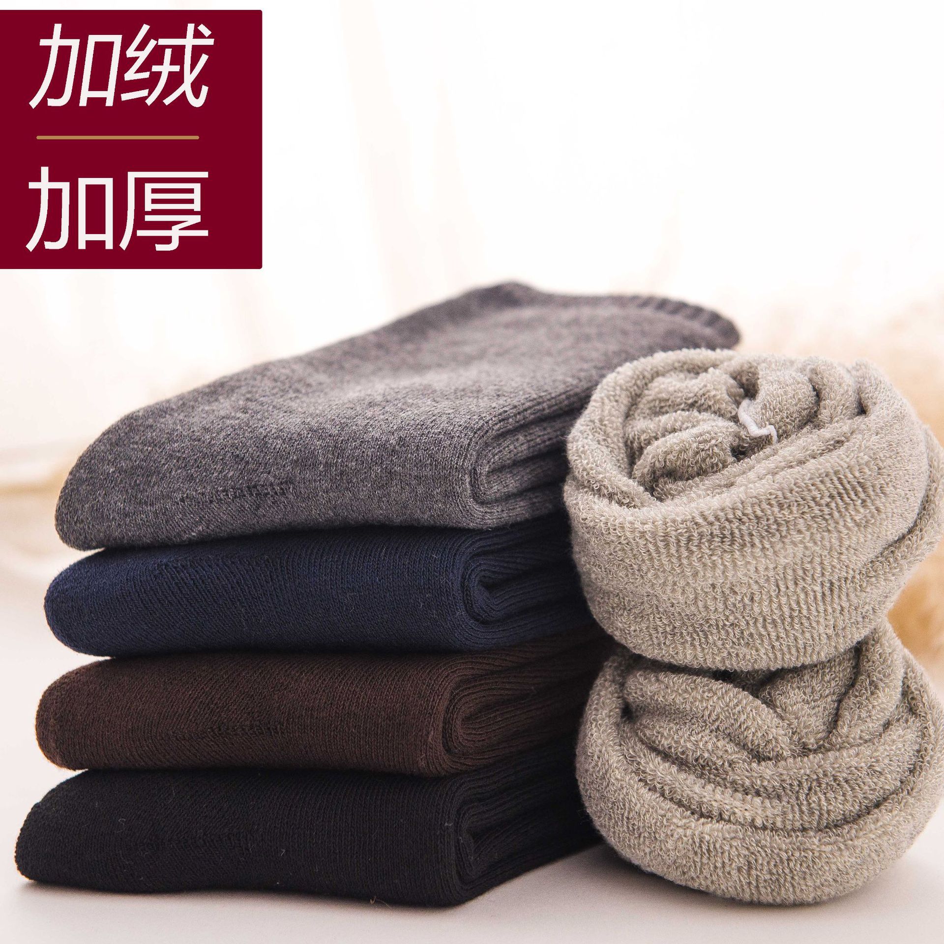 秋冬新款毛圈袜子男百搭纯色加绒加厚中筒袜休闲保暖棉质男袜批发