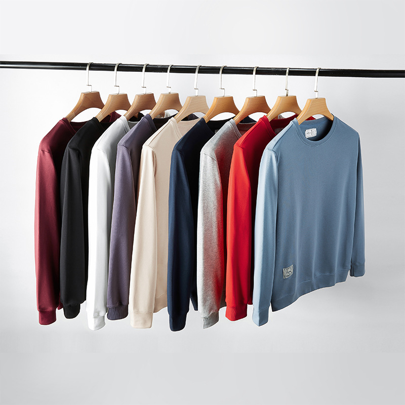 春秋圆领纯色卫衣男士韩版潮流宽松上衣长袖休闲加绒卫衣加厚男装