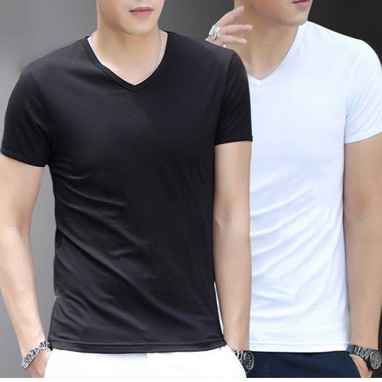 摆地摊夜市高质量夏季白色T恤男短袖纯色圆领V领男士修身潮流打底