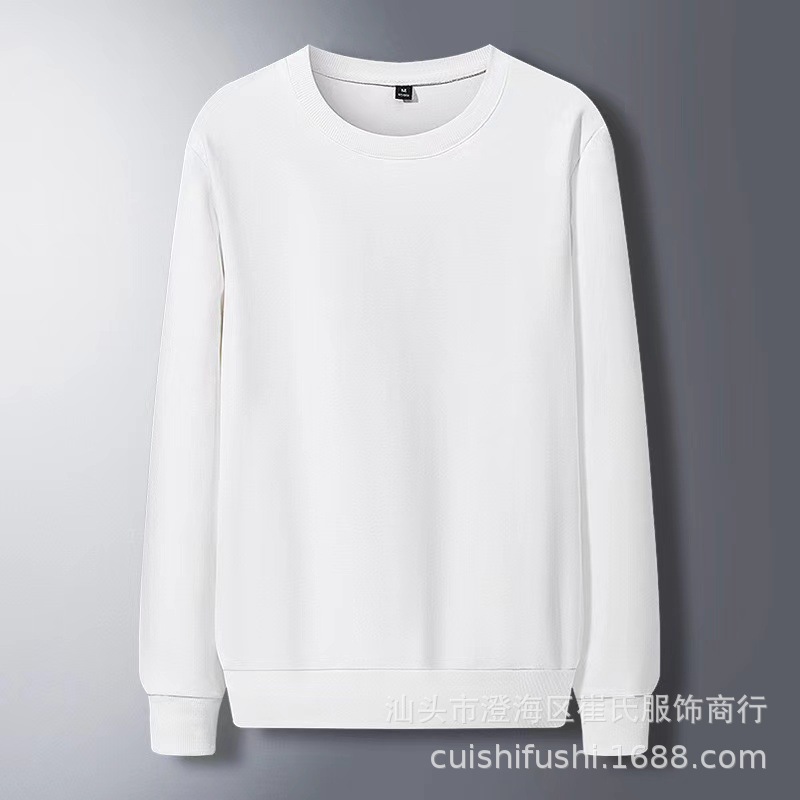270G秋冬装纯色圆领卫衣男女青少年套头情侣班服定制跨境双面羊绒
