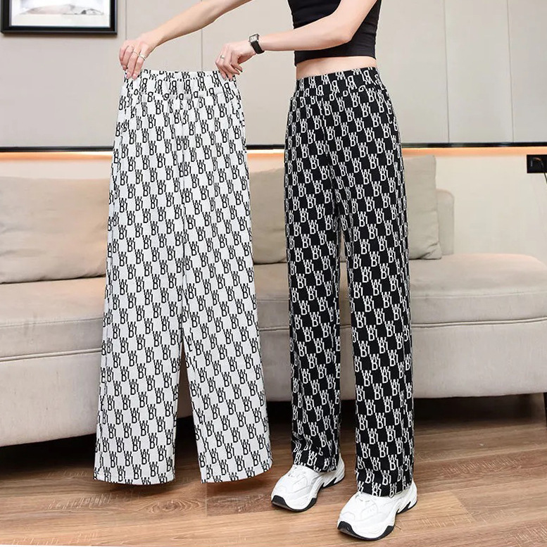 港风字母阔腿裤2021春夏新款卫裤女宽松运动休闲裤潮流百搭束脚裤
