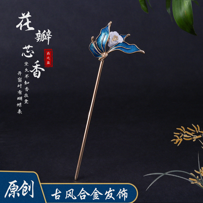 厂家直供花瓣芯香中国风发簪批发 原创手工金属长款发簪流苏发簪