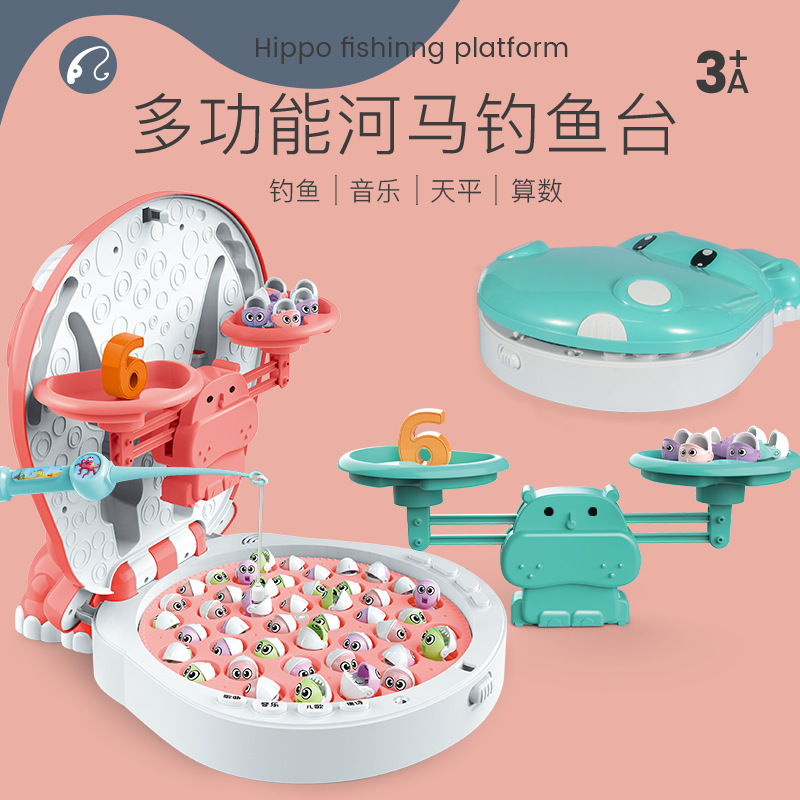 电动钓鱼盘 儿童天平钓鱼台音乐灯光USB充电多功能钓鱼池套装玩具