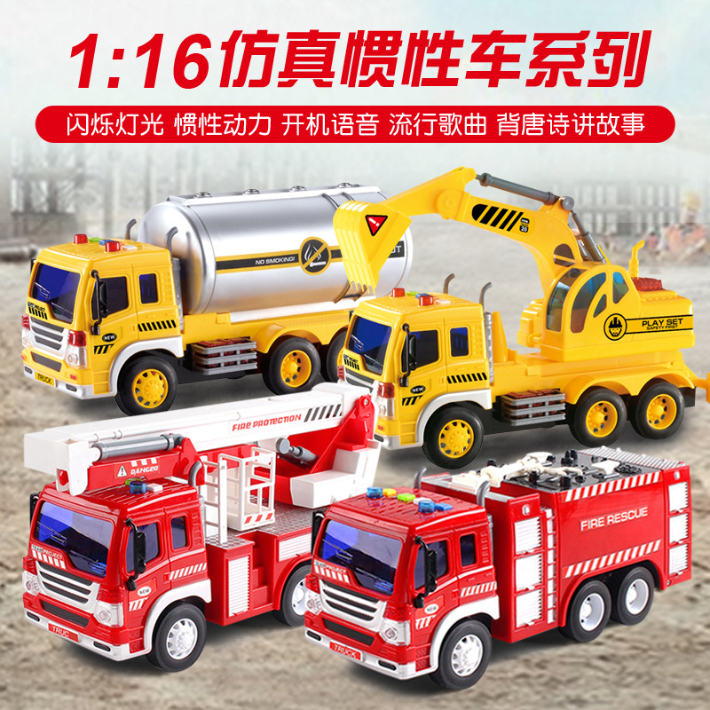大号惯性儿童玩具车云梯消防车玩具工程车挖掘机宝宝玩具会讲故事