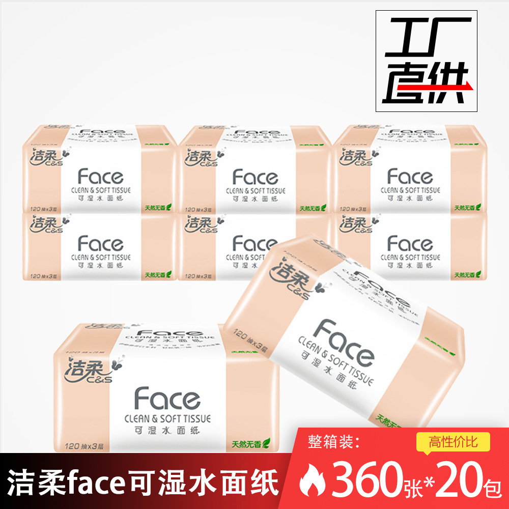 洁柔抽纸Face纸抽3层120抽餐巾纸纸巾20包家用整箱卫生纸批发代发