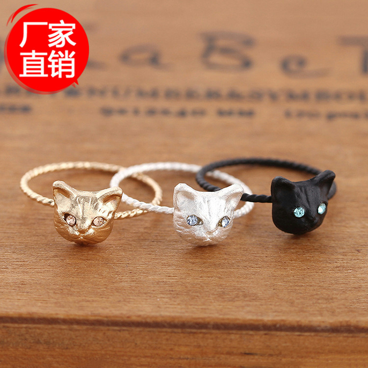 J681 韩版精致可爱逼真小猫咪镶钻动物戒指指环