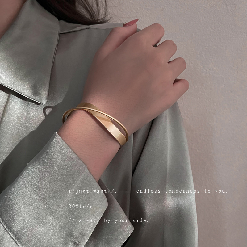 交叉哑金开口复古手镯韩国金属感冷淡风ins手链女简约设计感手饰