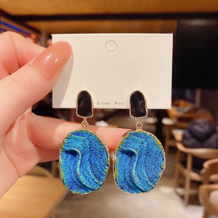 925银针滴油树脂耳环韩国东大门简约不规则几何耳钉个性潮流耳饰