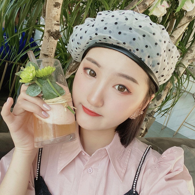 ins帽子女夏季网纱波点贝雷帽韩版时尚蕾丝时装帽画家帽平顶帽潮
