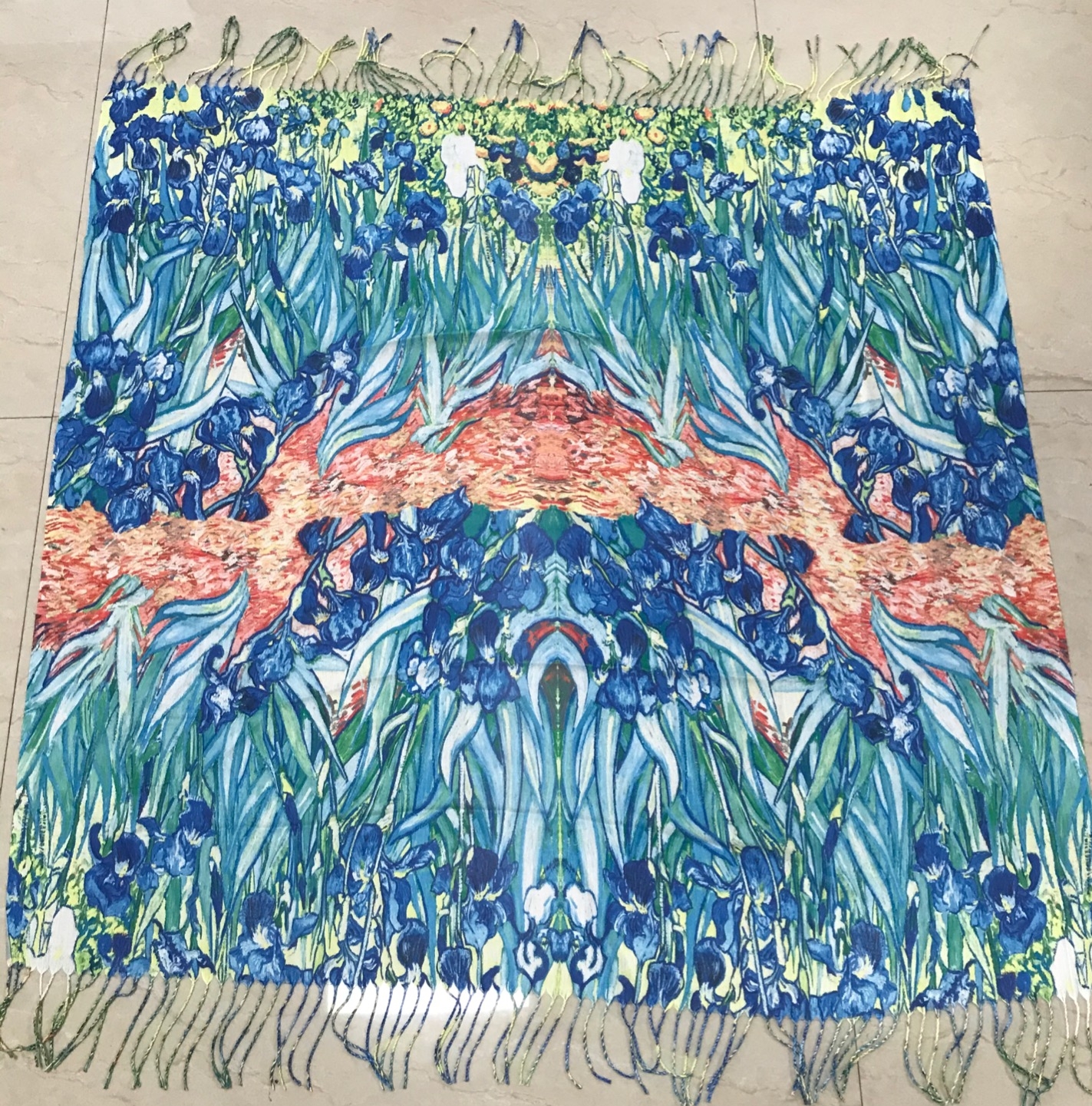 新款仿羊绒乱麻数码印花围巾 长巾方巾均可双面两用披肩