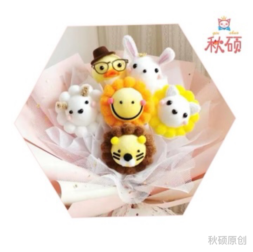 秋硕乒乓菊可爱笑脸动物公仔卡通花束生日节日毕业送朋友教师
