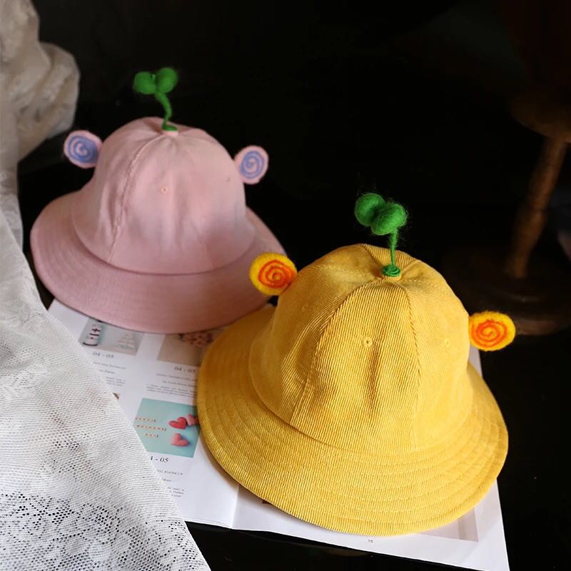 秋硕四季圈圈耳朵黄色渔夫帽灯芯绒亲子豆芽盆帽妈妈宝宝亲子款