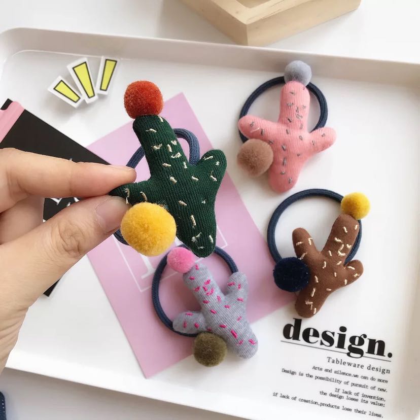 秋硕可爱超萌仙人掌立体毛绒彩色球球马尾发圈皮筋头绳新