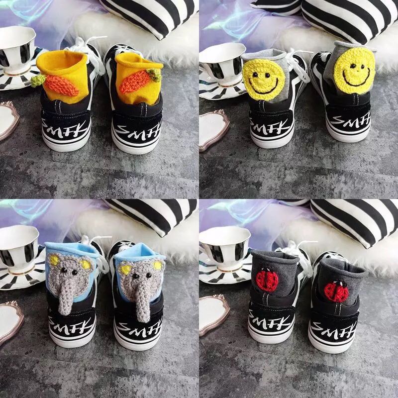 秋硕手工钩花卡通动物大象糖果色多色松口卷边学生袜子女士短袜配