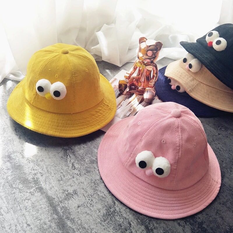 秋硕立体小鸡眼盆帽卡通灯芯绒渔夫帽儿童遮阳帽春夏防晒帽子亲子
