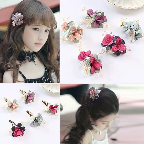 韩国儿童春天游玩饰品淑女花朵蕾丝发饰发夹头饰女童女孩发卡