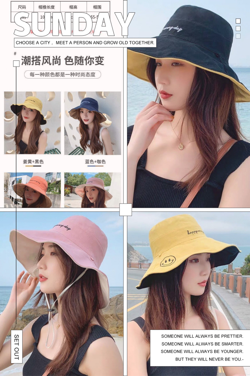 渔夫帽女双面大檐遮阳帽子夏天出游日系百搭网红韩版潮太阳帽
