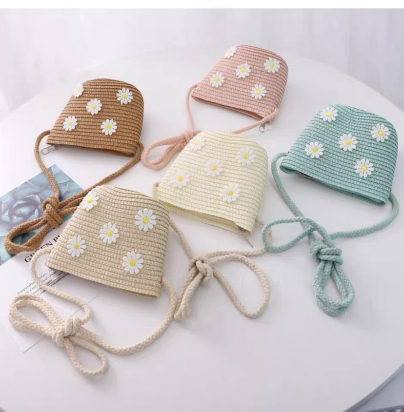 秋硕草帽女宝宝帽子遮阳防晒大檐帽小包套装