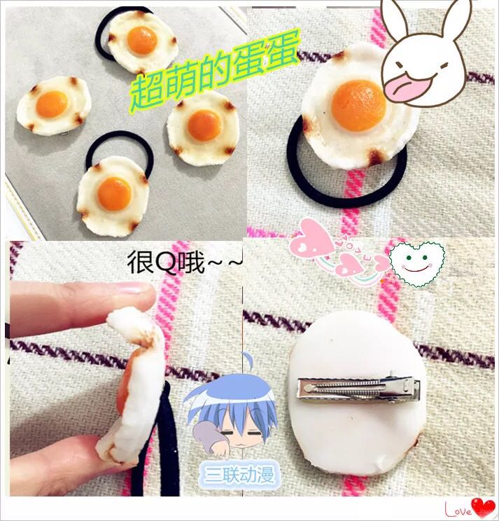 秋硕原宿软妹zipper可爱吃货荷包蛋煎蛋鸡蛋发绳发圈发夹