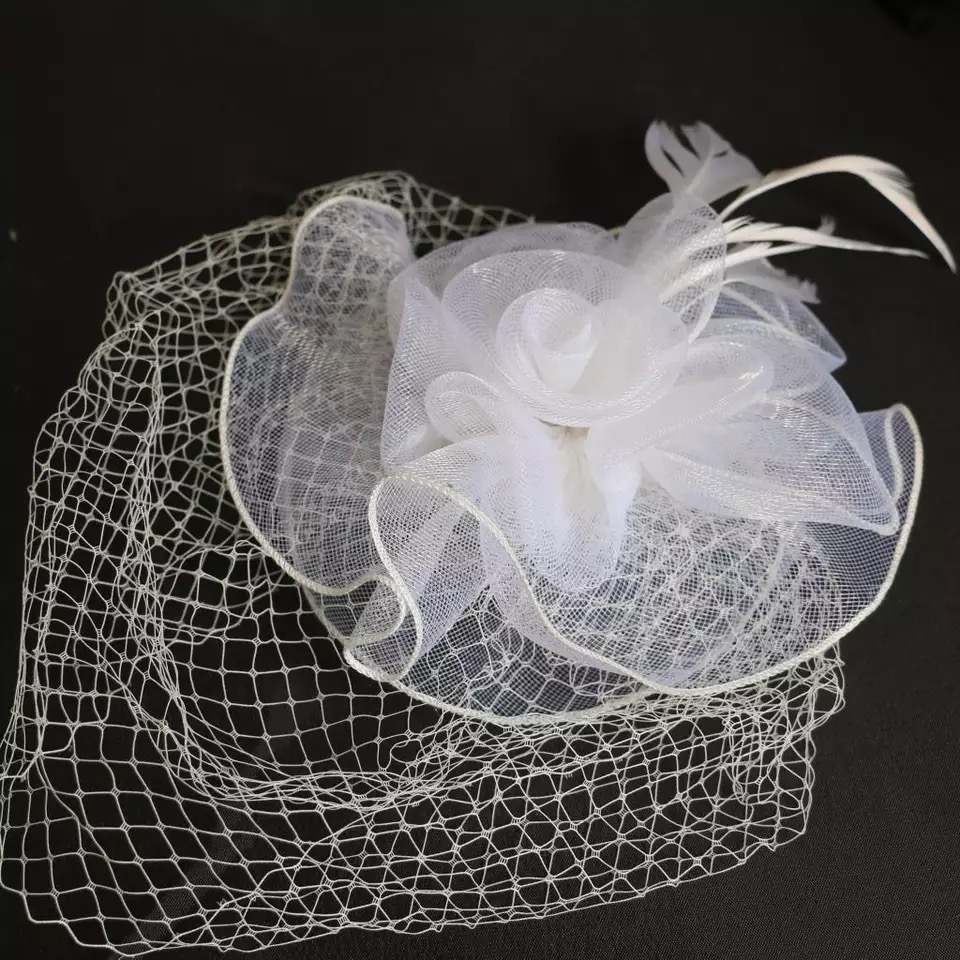 新娘遮面夸张羽毛头饰 白色舞台表演出网纱头花面纱发饰发卡