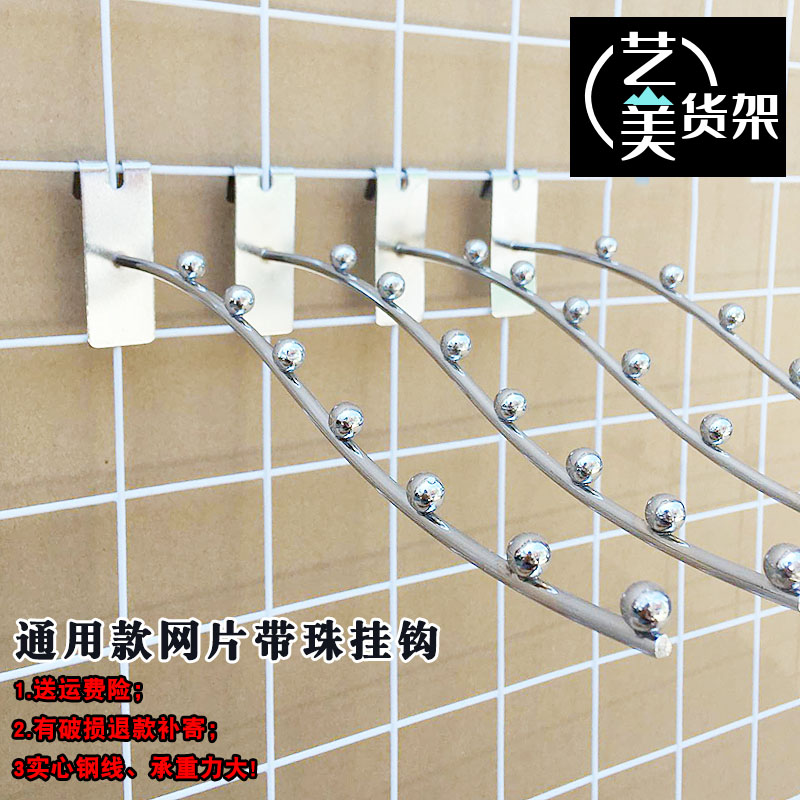 铁片网挂钩 带珠钩弯型5珠7珠货架挂钩 超市服装店手机店网格挂钩