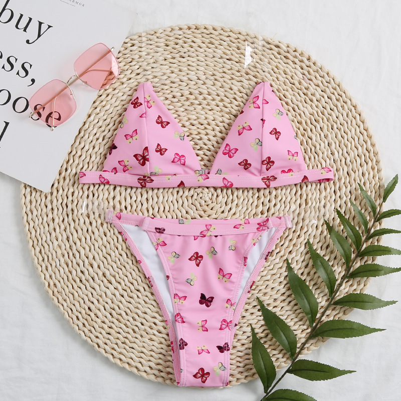 2020欧美爆款女分体泳衣透明肩带印花性感比基尼