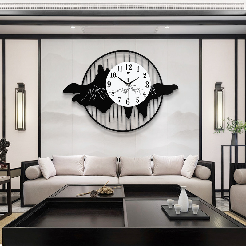新中式创意挂钟客厅时尚家用钟表卧室装饰静音时钟金属电子石英钟