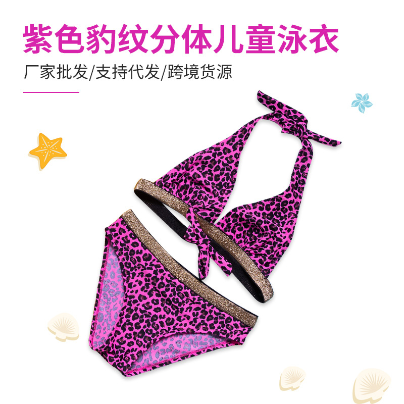 2020新款儿童泳衣女代发分体宝宝紫色豹纹泳衣外贸儿童比基尼