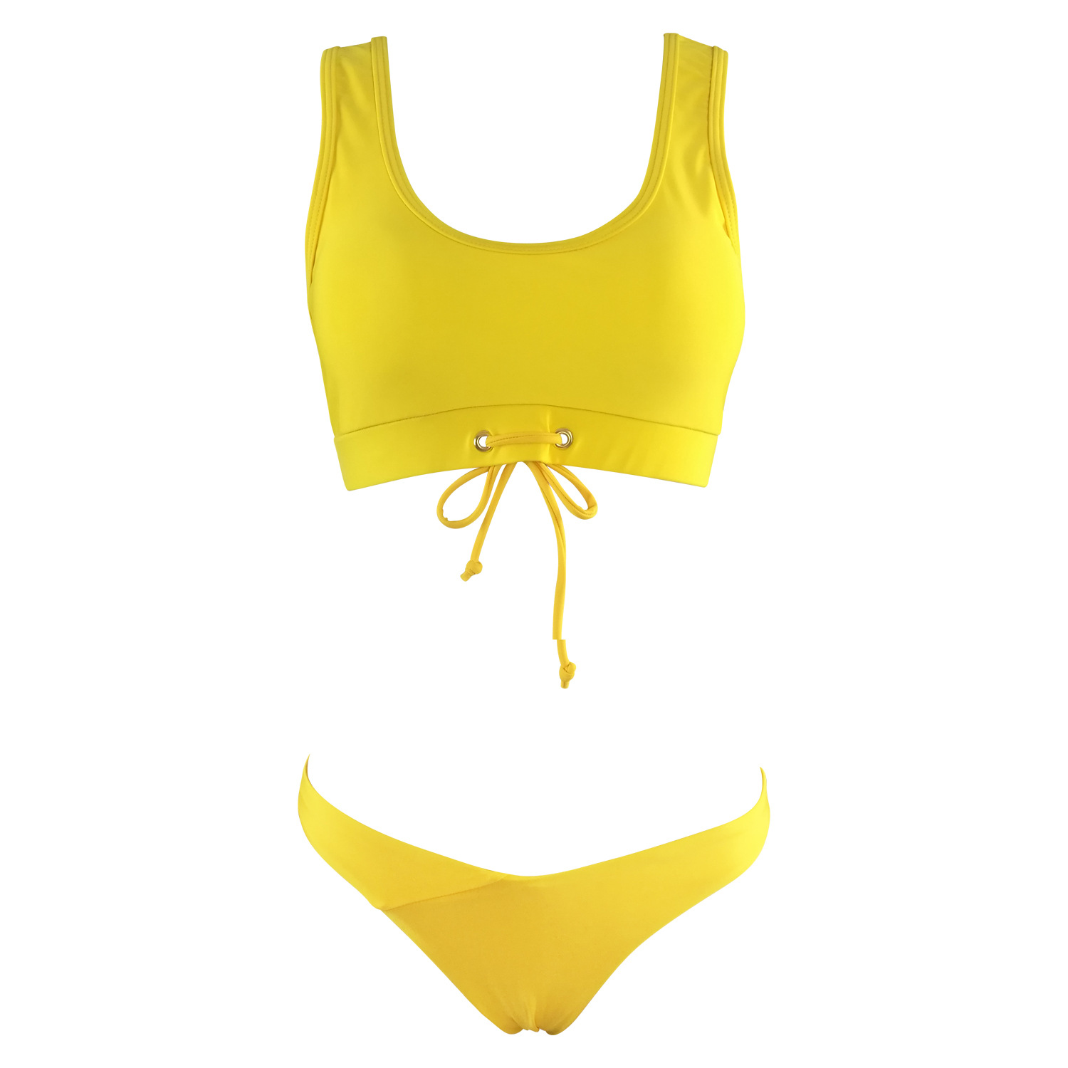 欧美新款黄色纯色性感比基尼女泳衣加肥大码分体低腰泳装