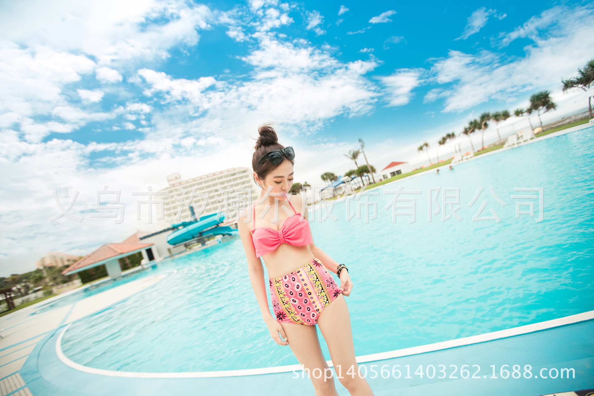 新款高腰比基尼 独家版 爆款韩版大蝴蝶结印花比基尼泳衣厂家批发