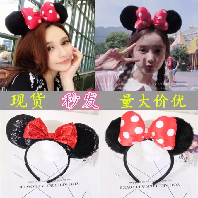 秋硕手工米老鼠米奇米妮大耳朵头箍 蝴蝶结可爱卡通发箍节日发饰