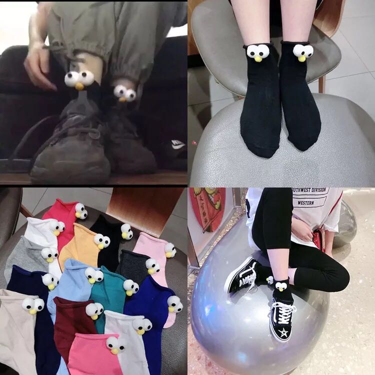 秋硕韩ulzzang立体眼睛糖果色可爱学生童趣减龄棉短袜配件