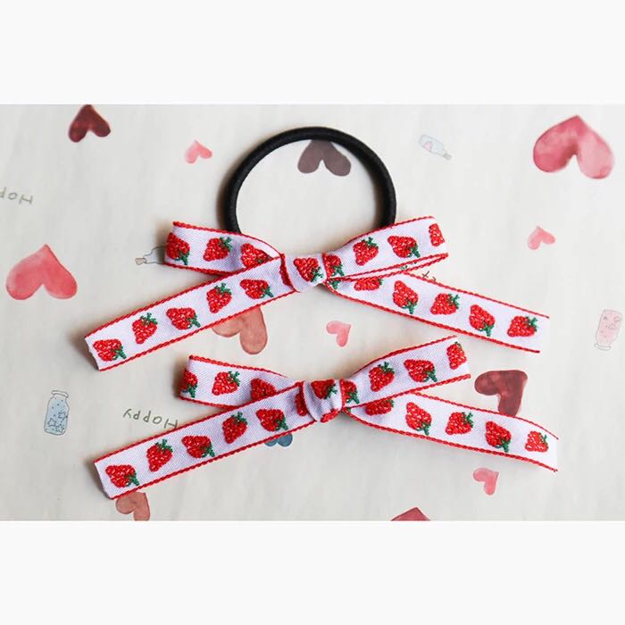 秋硕少女草莓发圈发绳手作原宿风草莓蝴蝶结头绳皮筋双马尾发饰