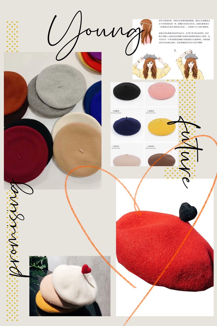 秋硕原创设计日系原宿手工羊毛毡爱心贝雷帽 秋冬手作画家帽子