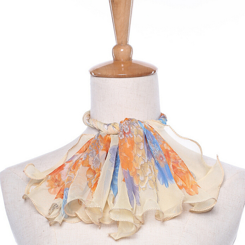 春夏季乔其印花小方巾韩国职业丝巾木耳边纱巾围巾女