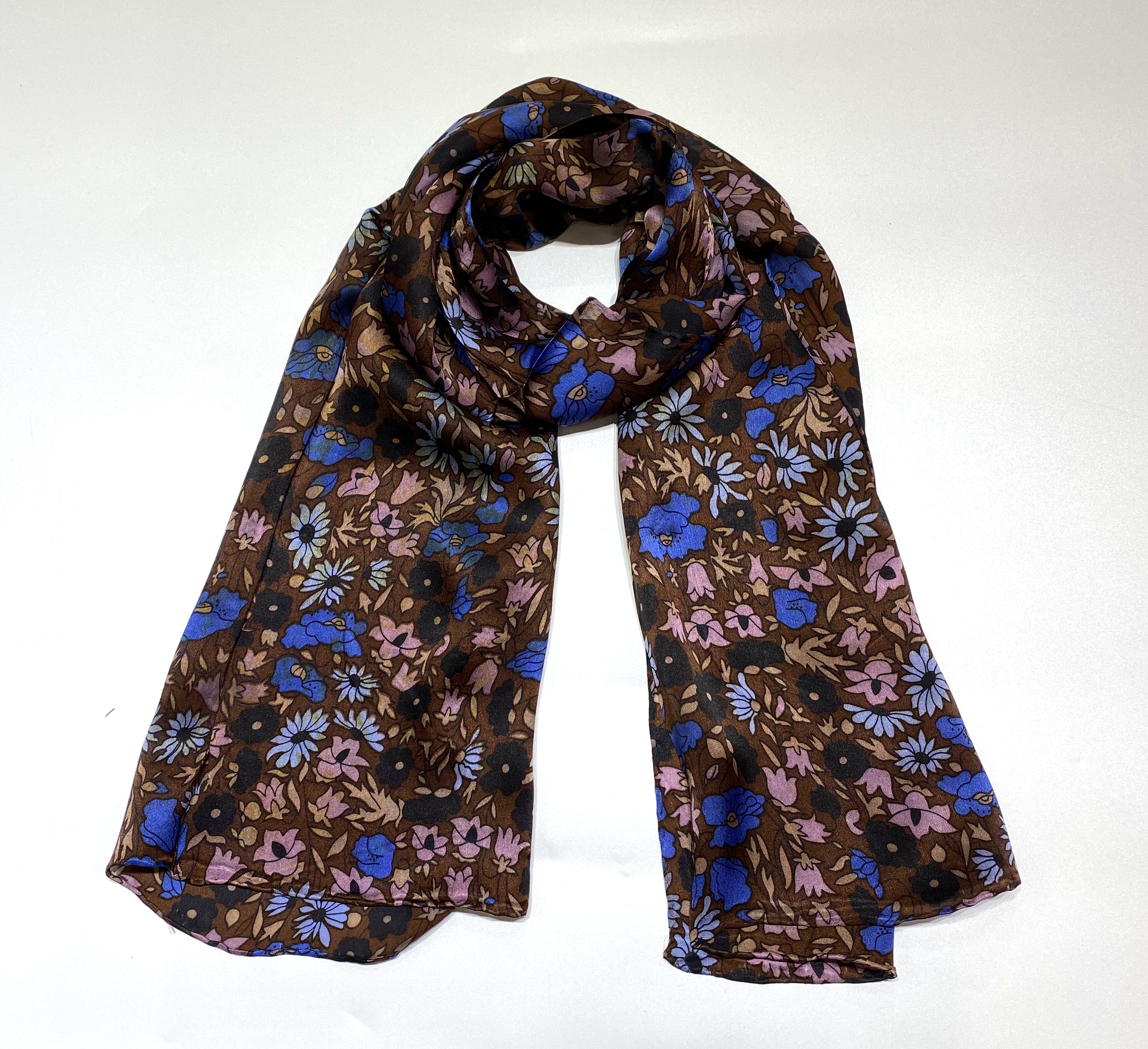 100%桑蚕丝围巾真丝印花丝巾乔其缎手工卷边围脖