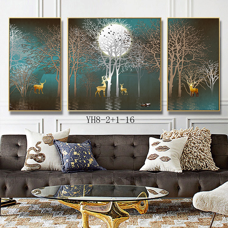 客厅装饰画沙发背景墙面三联画现代简约新中式水墨山水画挂画壁画