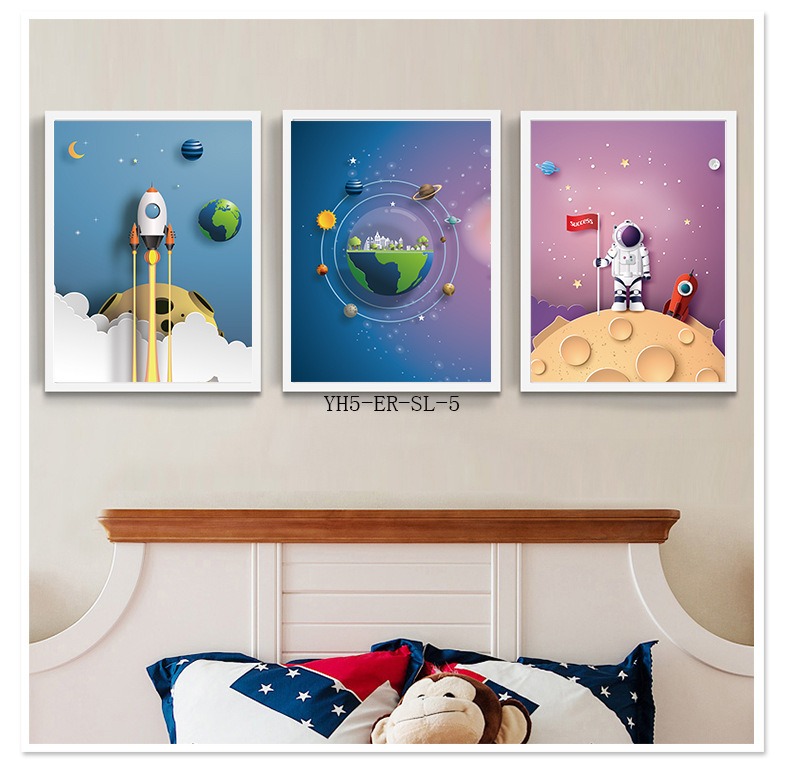 儿童房床头背景墙装饰画男孩卧室挂画3d立体宇航员太空人房间壁画
