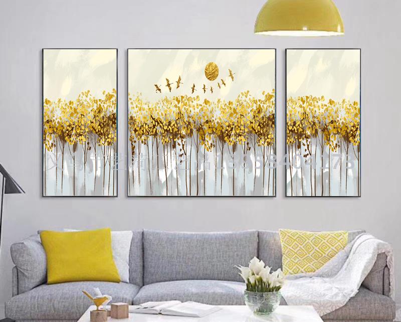 晶瓷装饰画三联画 现代简约客厅轻奢美式抽象壁画北欧风立体挂画