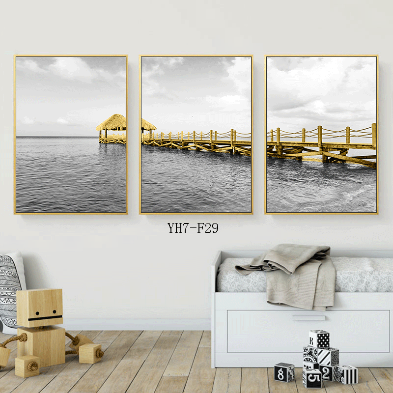 桥来运转客厅装饰画沙发背景三联画现代简约北欧黑白挂画墙面墙画