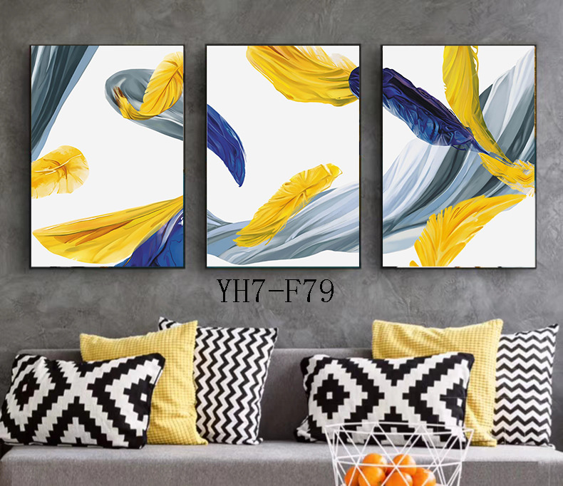 现代轻奢抽象创意金色羽毛爵士白简约餐厅三联装饰画