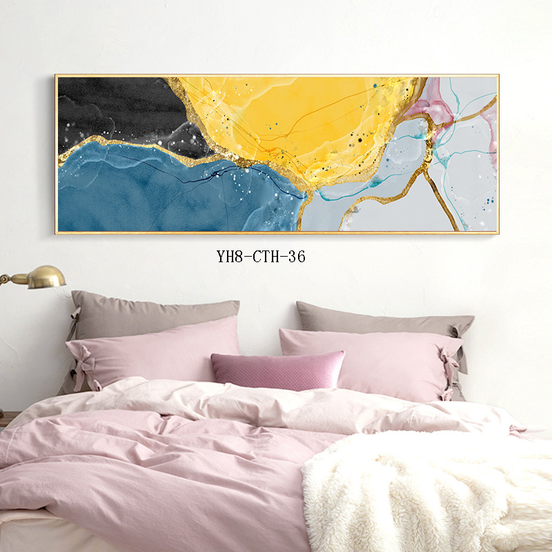 抽象床头装饰画简约美式背景墙横条油画现代酒店房间挂画