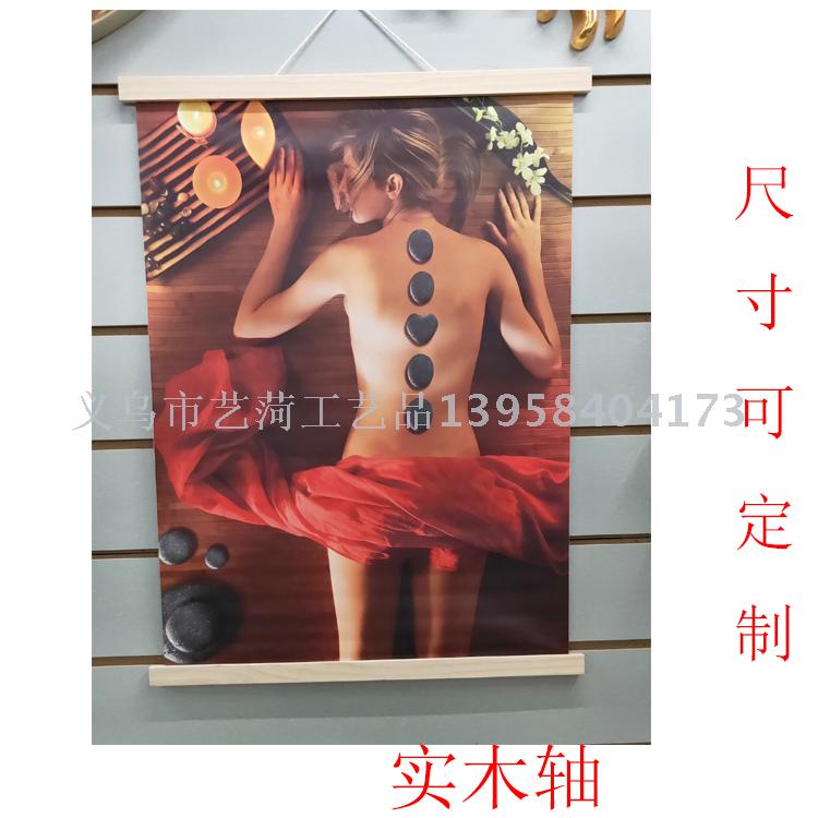 厂家直销装饰挂轴画实木磁性挂轴装饰画定制实木酒店洗浴中心挂画
