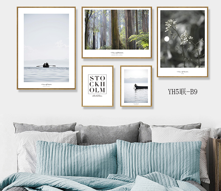 美忆现代简约客厅沙发背景墙装饰画北欧组合壁画五联挂画椰树菠萝