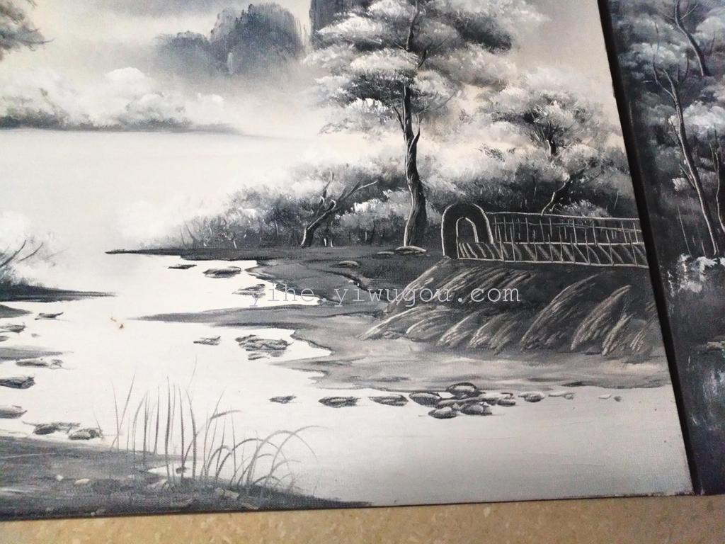 出口黑白纯手绘油画 80x80 三联帆布画 棉布无框画