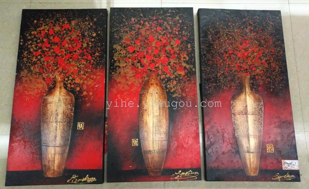 纯手绘花卉油画 50x100 三联画 成套油画批发