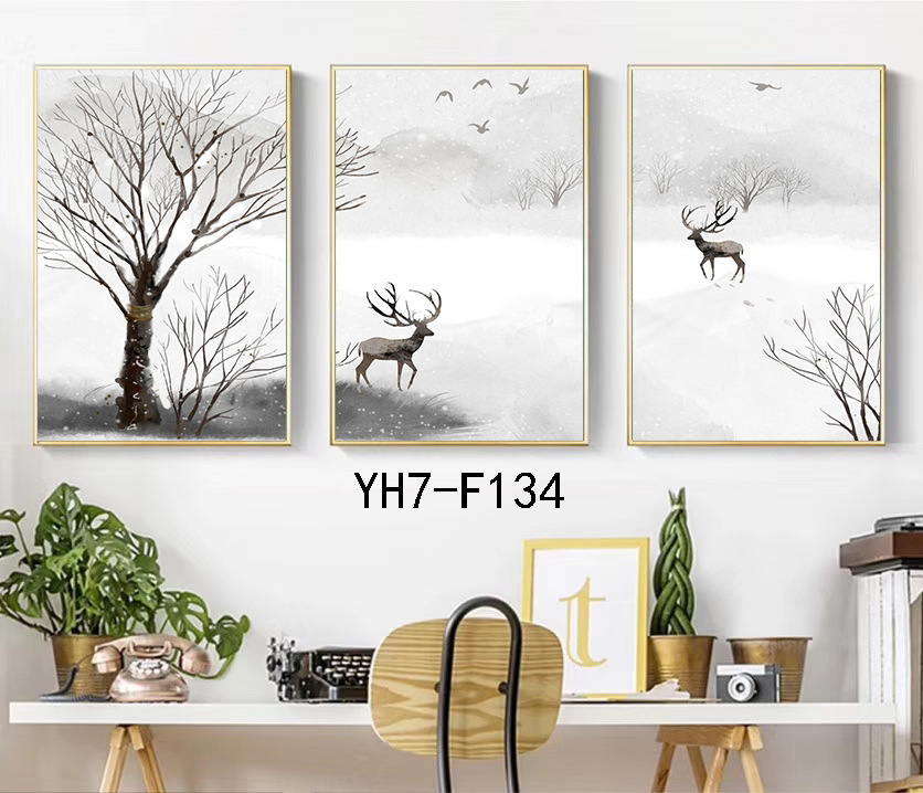 厂家直销北欧装饰画三联麋鹿挂画沙发背景客厅装饰画现代餐厅画