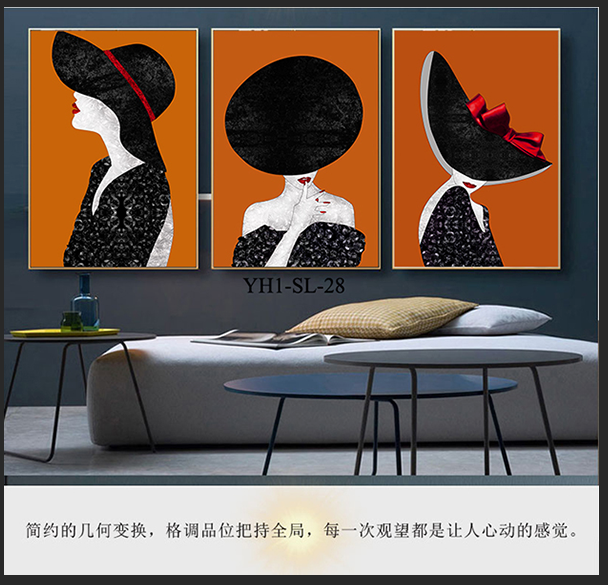出口北欧人物装饰画现代轻奢艺术挂画客厅咖啡厅玄关墙画三联壁画