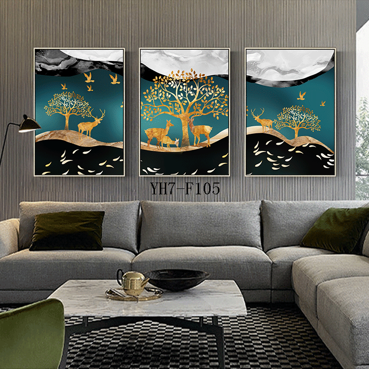 客厅装饰画北欧餐厅三联画壁画现代简约轻奢风沙发背景墙晶瓷挂画